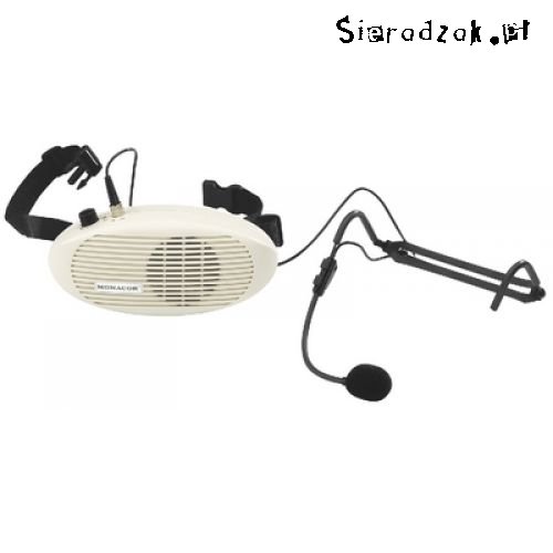 Monacor WAP-3 przenośny wzmacniacz głosu z nagłowny mikrofonem elektretowym.Przeznaczony do wzmacniania głosu,odpowiedni dla przewodników, na wykłady, zajęcia aerobiku, itp.