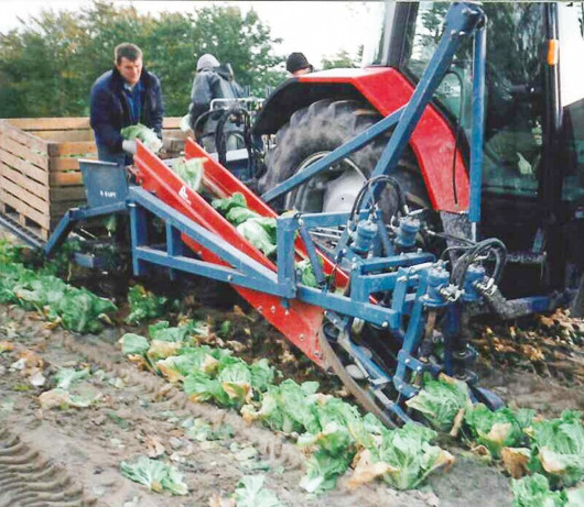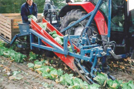 Wycinka kapusty pekińskiej na taśmę.