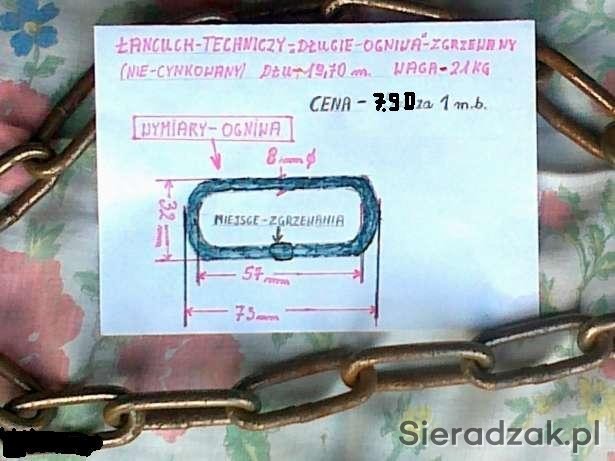Długie ogniwa, zgrzewany(nie cynkowany) długości 19,70m, waga 21kg.