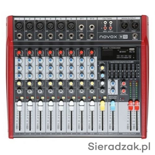 Mikser audio Novox M10 z odtwarzaniem plików MP3-WAV poprzez wejście USB i odtwarzaczem odbiornikiem bluetooth
