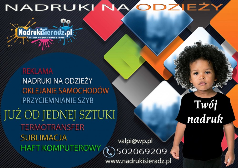 NADRUKI NA KOSZULKACH (TERMOTRANSFER,SUBLIMACJA,HAFT KOMPUTEROWY)Reklama.Oklejanie samochodów itp.
