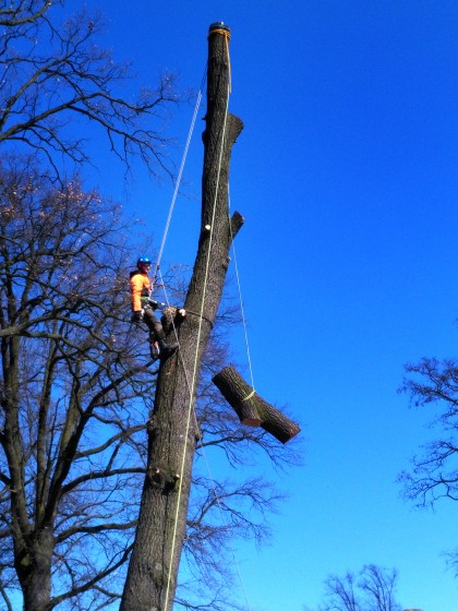wycinką drzew w trudnych miejscach metodą alpinistyczną (cmentarze, budynki, linie energetyczne)