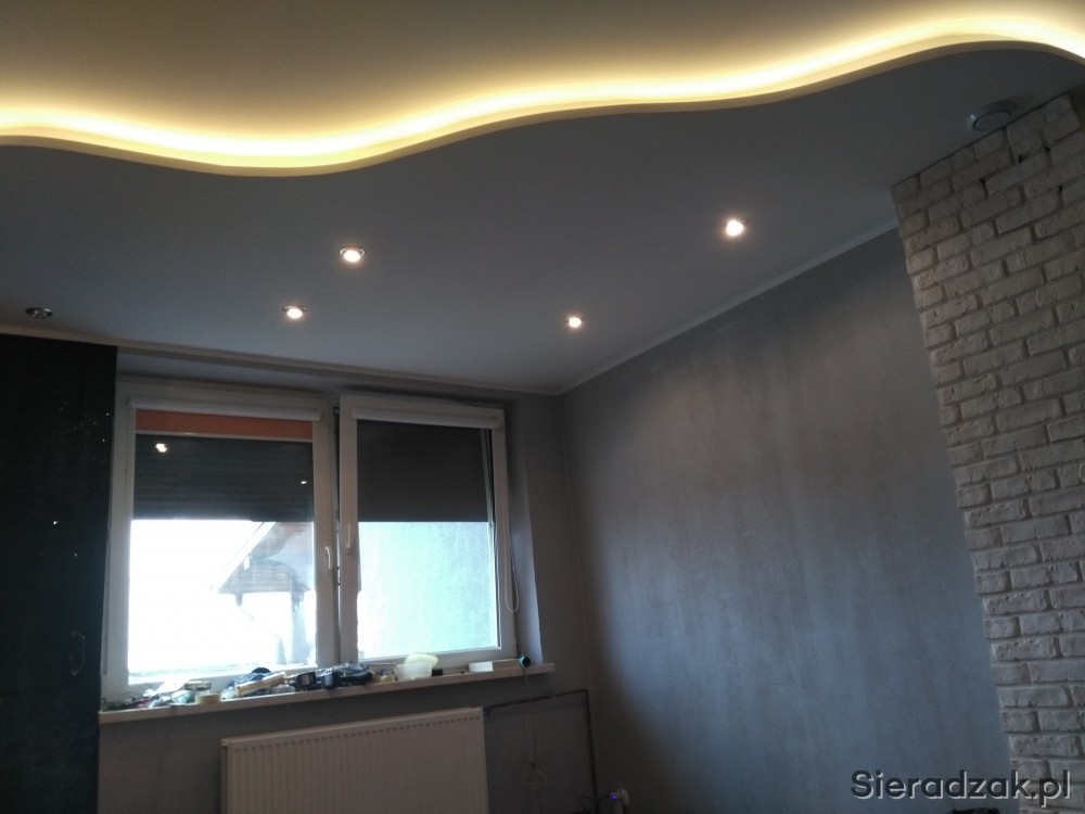 Sufity podwieszane podświetlane LEDem, jedno, kilku poziomowe, w różnych kształtach.