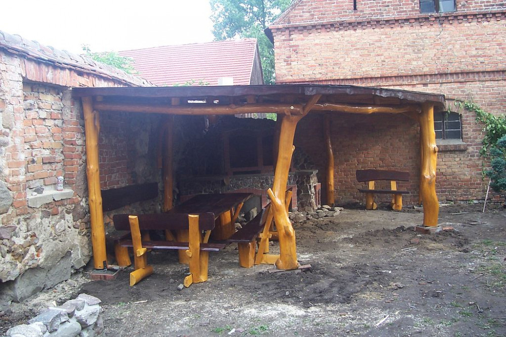 1. Elementy altany wykonane z pni drzew korowanych, suchych, wyszlifowanych, zaimpregnowanych.