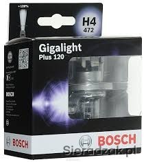 Żarówki H4 BOSCH Gigalight Plus dostarczają do 120% wiecej światła na drodze w porównaniu ze standardowymi żarówkami.
