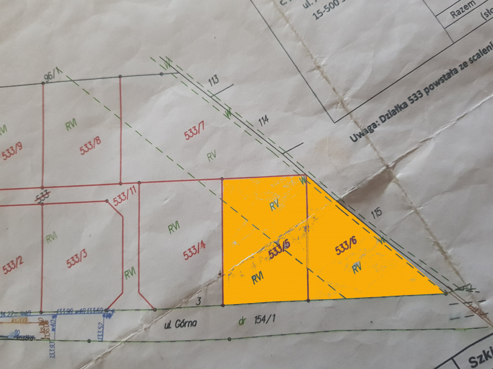 Dostępna działka w ksztalcie trójkąta: 533/6