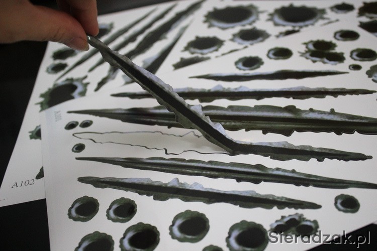 Naklejki znajdują się na folii formatu A4, każdą z nich odzielnie odrywa się od folii i przykleja do karoserii samochodu.