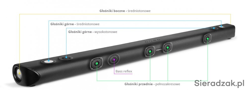 - Boczny prawy: 2", 25 W RMS, 8 Ohm
