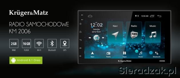 Nowość w sklepie Lechpol Electronics! Już jest dostępne nowe radio samochodowe Kruger&Matz KM 2006! To wyposażone w 7-calowy wyświetlacz urządzenie jest pierwszym radiem w ofercie marki działającym w oparciu o system Android. Radio posiada funkcję łączności Bluetooth oraz Wi-Fi, a także umożliwia podłączenie kamery cofania.