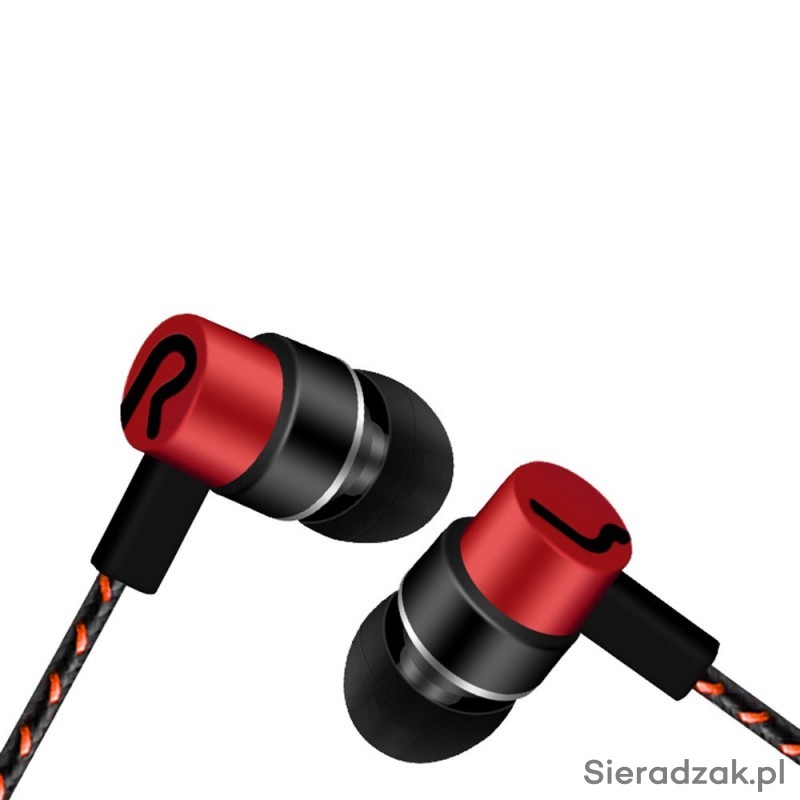 Metalowe słuchawki stereo Super Bass na kablu w mocnym sznurowym oplocie
