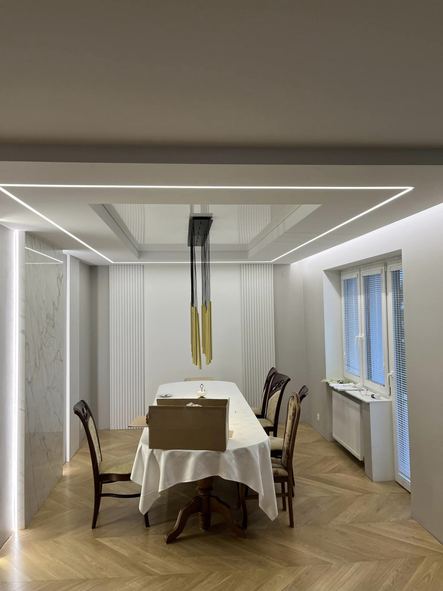 Montaż sufitu możliwy jest w 1 dzień, bez uciążliwego pyłu i bałaganu.