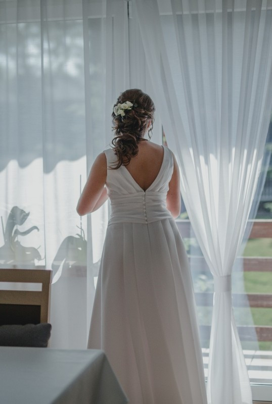 Mam do sprzedania suknię ślubną o zbliżonym rozmiarze 38. Wymiary sukni na płasko to: