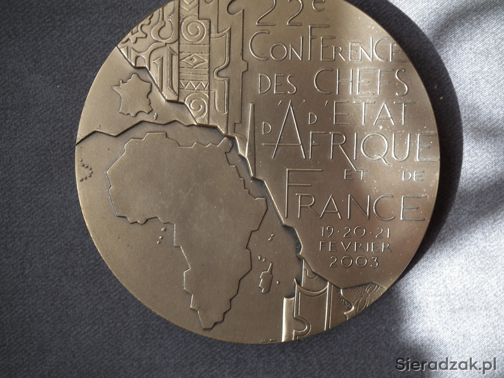 22 konferencja szefów państw Afryki i Francji /22 conference des chefs d etat afrique et france. Medal okolicznościowy z 2003 roku, średnica 10 cm.