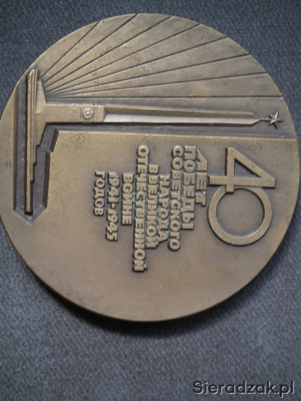 Radziecki medal oklicznościowy z 1985, wydany z okazji 40 rocznicy zwycięstwa nad hitlerowskimi niemcami. Średnica 7,4 cm
