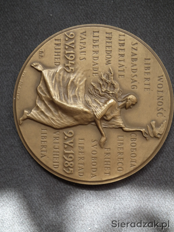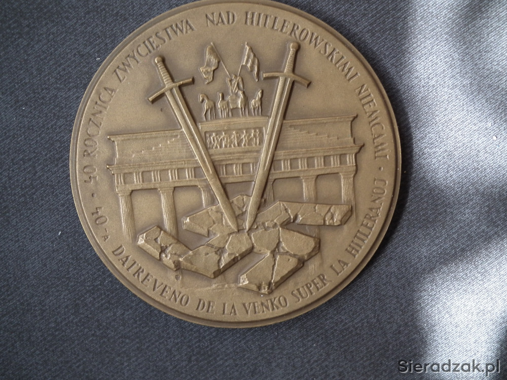 Polski medal oklicznościowy z okazji 40 rocznicy zwycięstwa nad hitlerowskimi niemcami. Średnica 7 cm