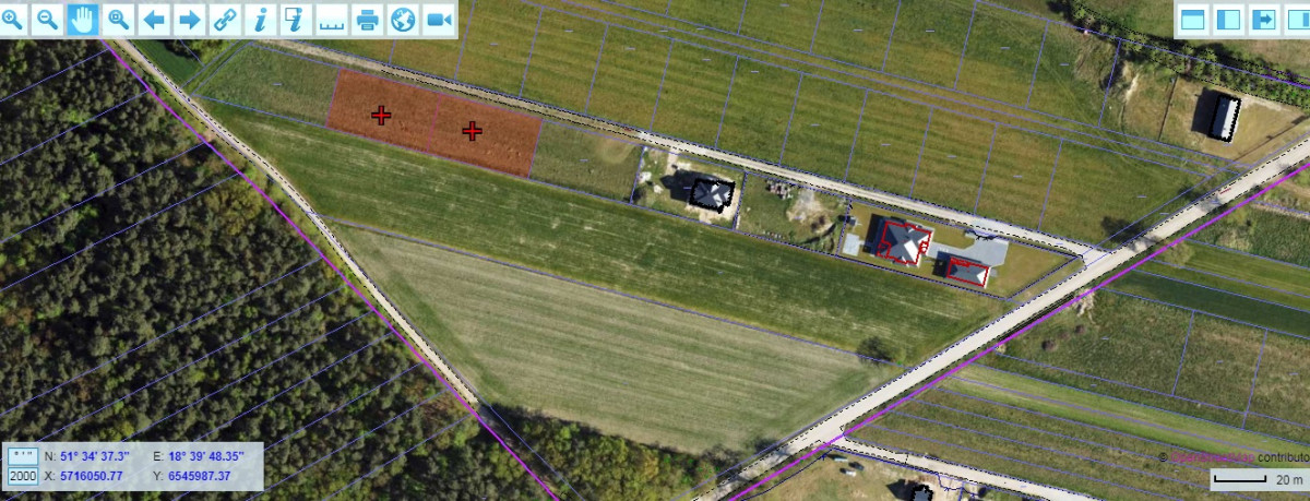 Powierzchnia poszczególnych działek: