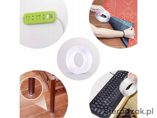 Taśma samoprzylepna bezbarwna GRIP TAPE wielokrotnego użytku Nano Tape Taśma wielofunkcyjna, przezroczysta, dwustronna, do mocowania różnych przedmiotów. Taśmę możesz umyć wodą. Wystarczy umyć i osuszyć, aby przywrócić lepkość, a następnie ponownie użyć.