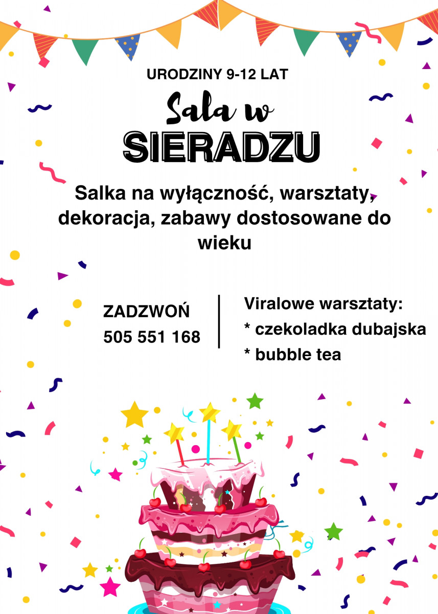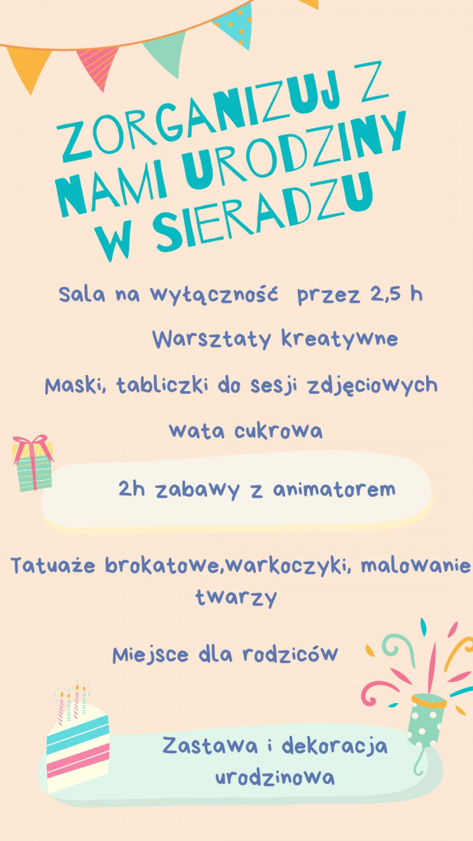 Drodzy Rodzice zapraszamy na urodzinki na salce w Sieradzu.