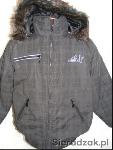 W ofercie nowa , bardzo ciepła i lekka kurtka zimowa z kapturem, zapinana na zamek, z przodu na dole dwie wsuwane kieszenie zapinane na zamek , u góry jedna kieszonka zapinana na zamek, na prawym rękawie jedna kieszeń zapinana na zamek, wewnątrz jedna kieszeń zapinana na zamek, kaptur i obszycie kaptura odpinane, ozdobne lamówki, dół i rękawy wykończone ściągaczem , produkt polski.