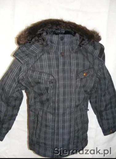 W ofercie nowa, bardzo ciepła kurtka zimowa z kapturem, zapinana na zamek, a zamek kryty patką zapinaną na rzepy i napy, kaptur i obszycie kaptura odpinane, z przodu cztery kieszenie zapinane na zamek, przy mankietach i na dole kurtki regulacje, wewnątrz jedna kieszeń zapinana na zamek.