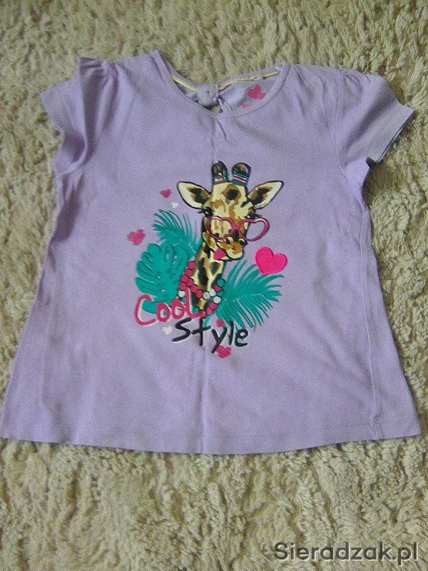 Sprzedam koszulkę dziewczęcą rozmiar 110/116. Kolor jasnofioletowy z aplikacją żyrafy. Stan Dobry.
