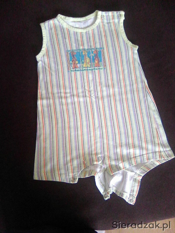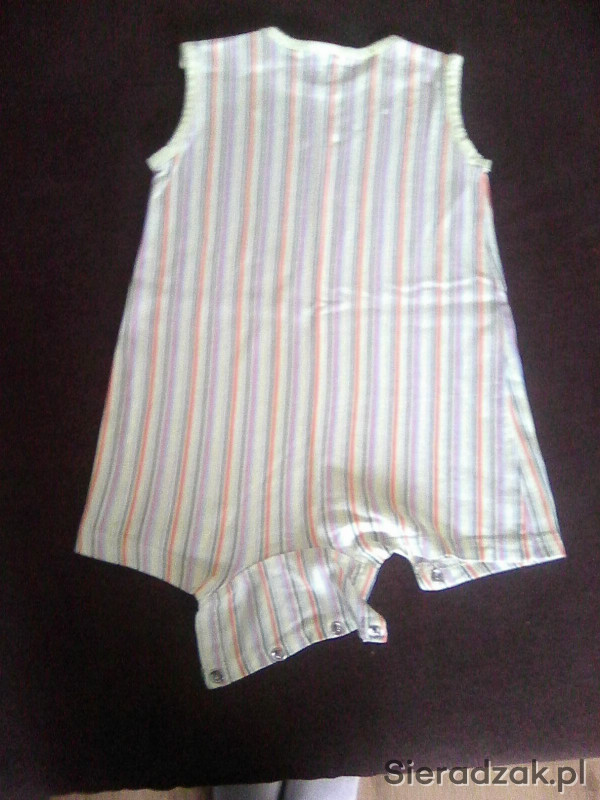 Sprzedam rampers dziecięcy bez rękawów rozmiar 86. Kolor jasnożólty w kolorowe paseczki. Stan dobry.