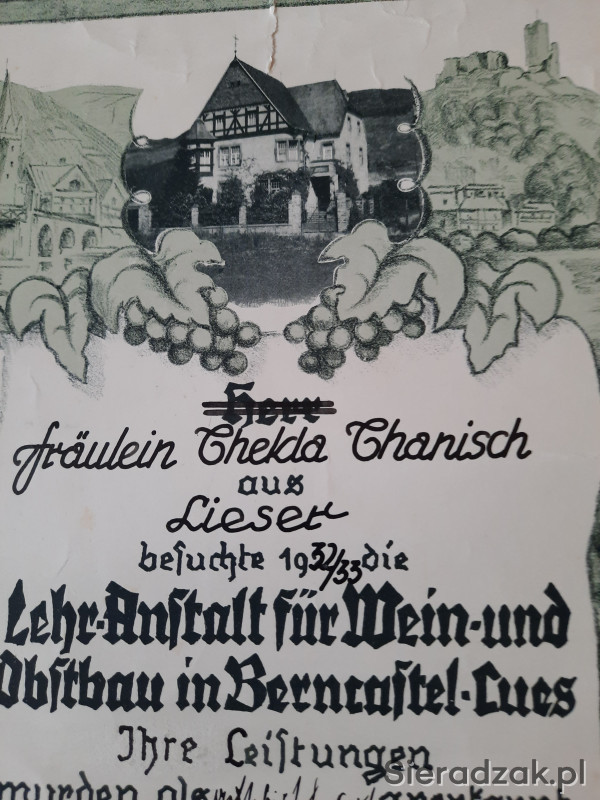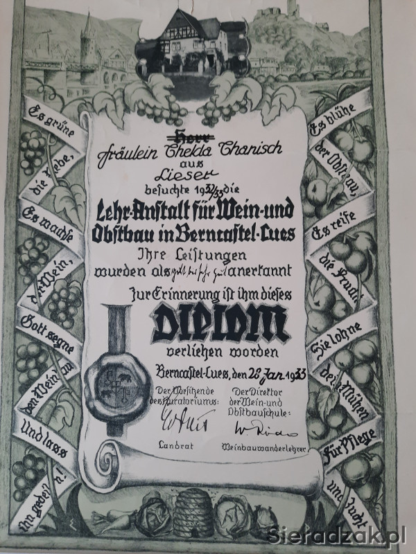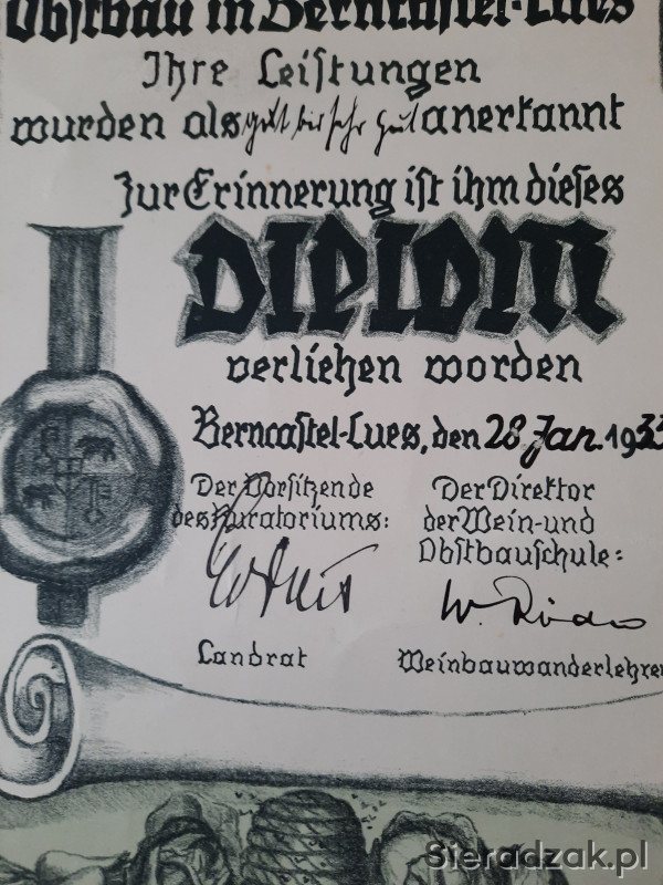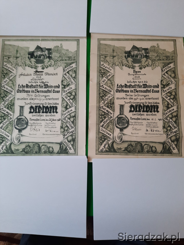 Dwa stare dyplomy niemieckie - 1928 i 1933r, - nazwisko Thanisch. Wymiary 28 cm x 40 cm.