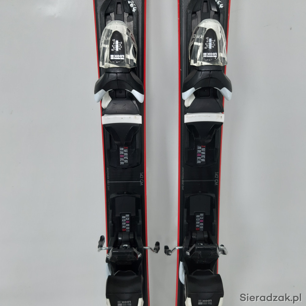 używane narty o długości 142cm,taliowanie 126/74/111,promień skrętu 10m,wiązanie look xpress skala 2.5-10 din.ślizgi w bardzo dobrym stanie.narty nasmarowane i naostrzone.