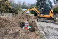 Przygotowanie pod kostkeNiwelacja terenu przy pomocy niwelatora laserowego.