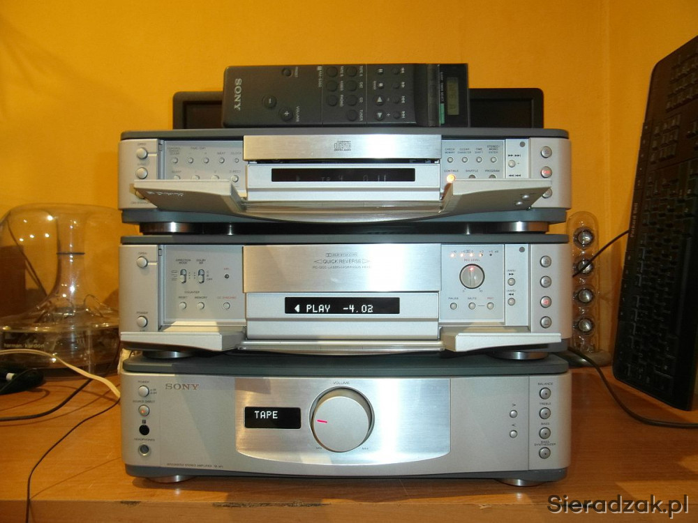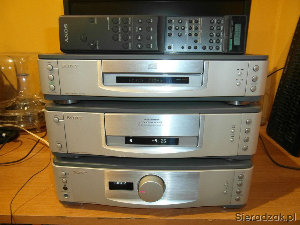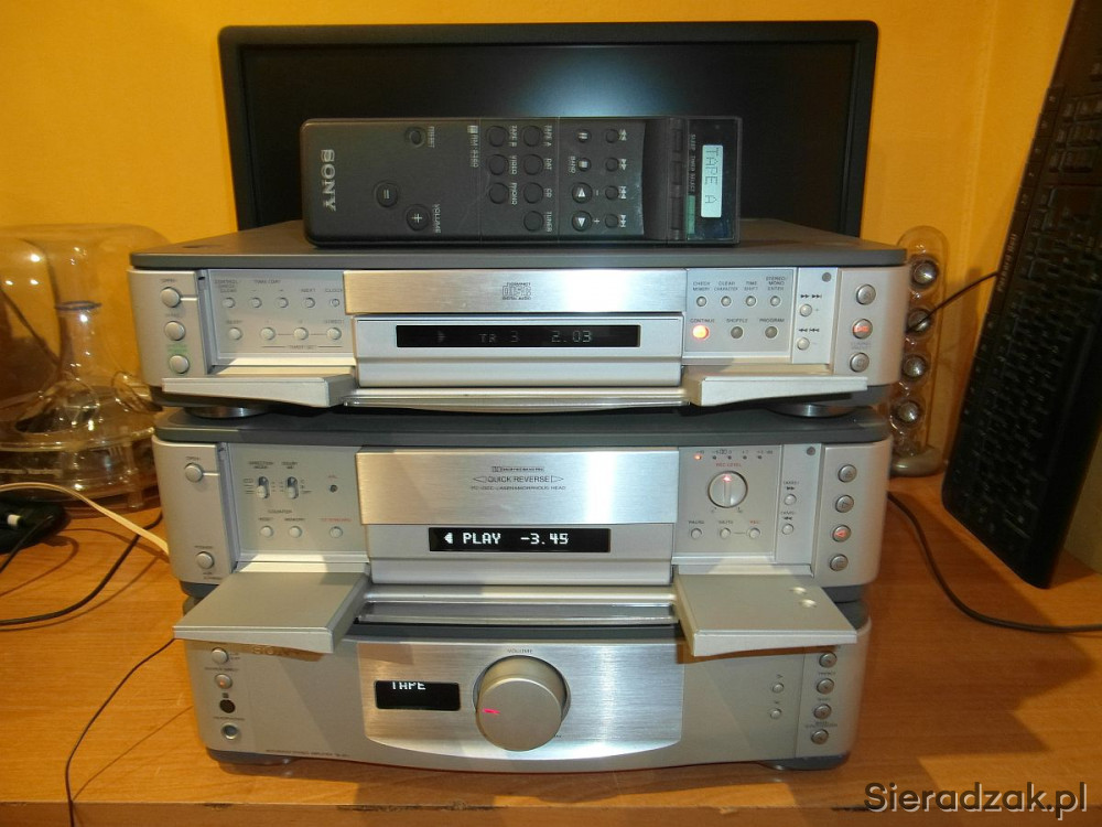 Stan jak na foto. Włącza się wzmacniacz gra wyśmienicie ma dużą moc. Oraz podbicie basu regulowane można dobrze wysterować kolumny. Funkcja Source Direct dla audiofilów. Magnetofon odtwarza posiada wskaźnik wysterowania dźwięku. W CD/Tuner słabiej świeci wyświetlacz i CD czasem przeskoczy ale rzadko mu się to zdarza. Ogromny rozsuwany pilot z wyświetlaczem Sony w komplecie. Wysoka jakość wykonania aluminiowe font panele. Ciężka masywna Made in Japan!!! Polecam.