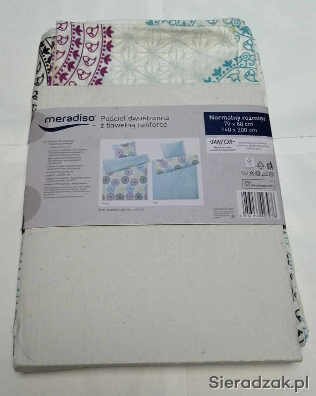 Witam, mam do sprzedania Pościel dwustronną renforce firmy meradiso normalny rozmiar 70x80 cm, 140x200 cm. Kupiona 17 lipca 2020 nie była w ogóle używana leżała w szafie od tego czasu. Nietrafiony prezent pozdrawiam i zapraszam również na inne moje aukcje.Proszę pisać