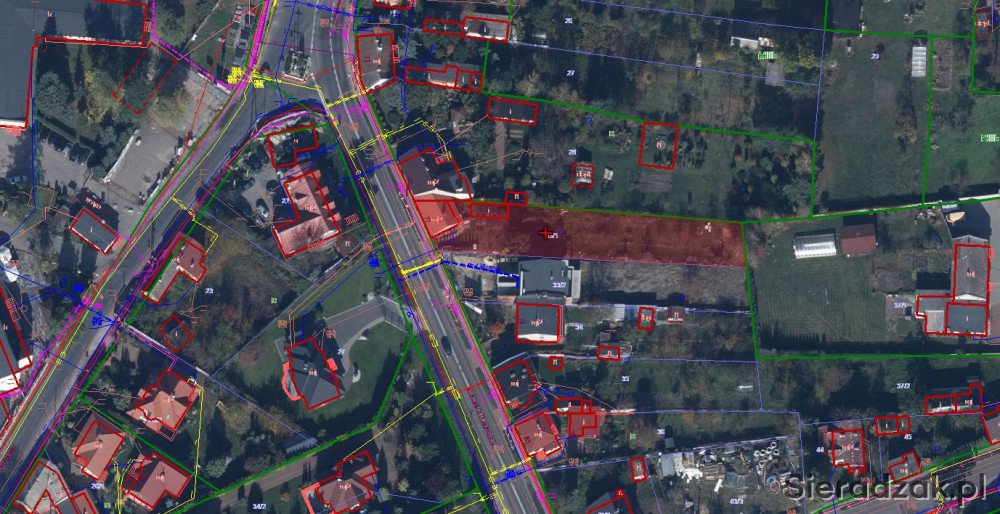 Działka ma wymiary od drogi dojazdowej około 15m (im bardziej w głąb działki następuje zwężenie), długość około 84m. Do działki doprowadzone są przyłącza: wodne, kanalizacji sanitarnej, energii elektrycznej. Na działce znajduje się również studnia głębionowa. W drodze znajduje się również sieć gazowa. Dla działki nie ma uchwalonego miejscowego planu zagospodarowania przestrzennego.