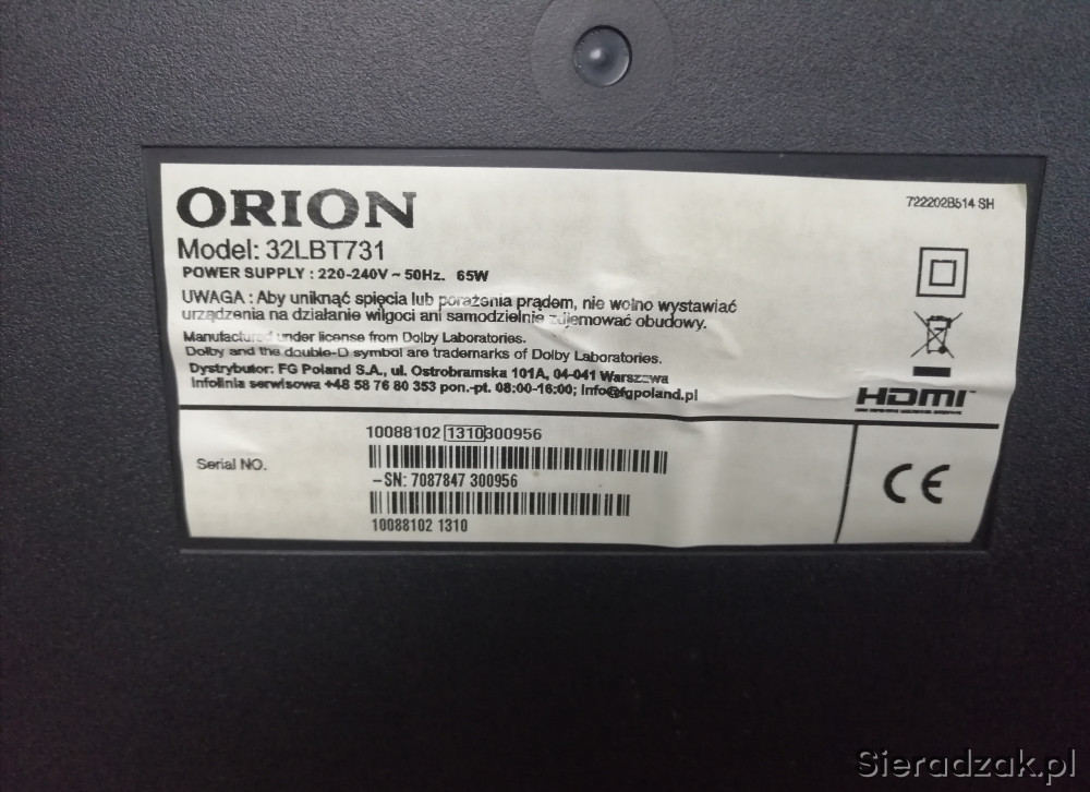 Witam mam do sprzedania telewizor marki Orion model 32 LBT731 o wielkości 32 cali w stanie bardzo dobrym. Telewizor w 100% sprawny nie pasków czy kropek itp. Posiadam cały zestaw producenta pilot, stopka, pudełko, papiery, oraz urządzenie Xiaomi mi tv stick, który w zwykły telewizor zmienia w prawdziwy smart tv z systemem Android TV taki jak fabrycznie w telewizorach urządzenie jest podłączone pod hdmi i pod zasilacz również mam do niego wszystko, co daje producent pudełko papiery ładowarka kabel oraz gwarancja 24 miesięcy od dnia zakupu dla zainteresowanych sprawdzę dokładną datę zakupu, Możliwość zamiany na telewizor 40 lub 43 cale nie większy, Pozdrawiam i zapraszam również na inne moje aukcje.