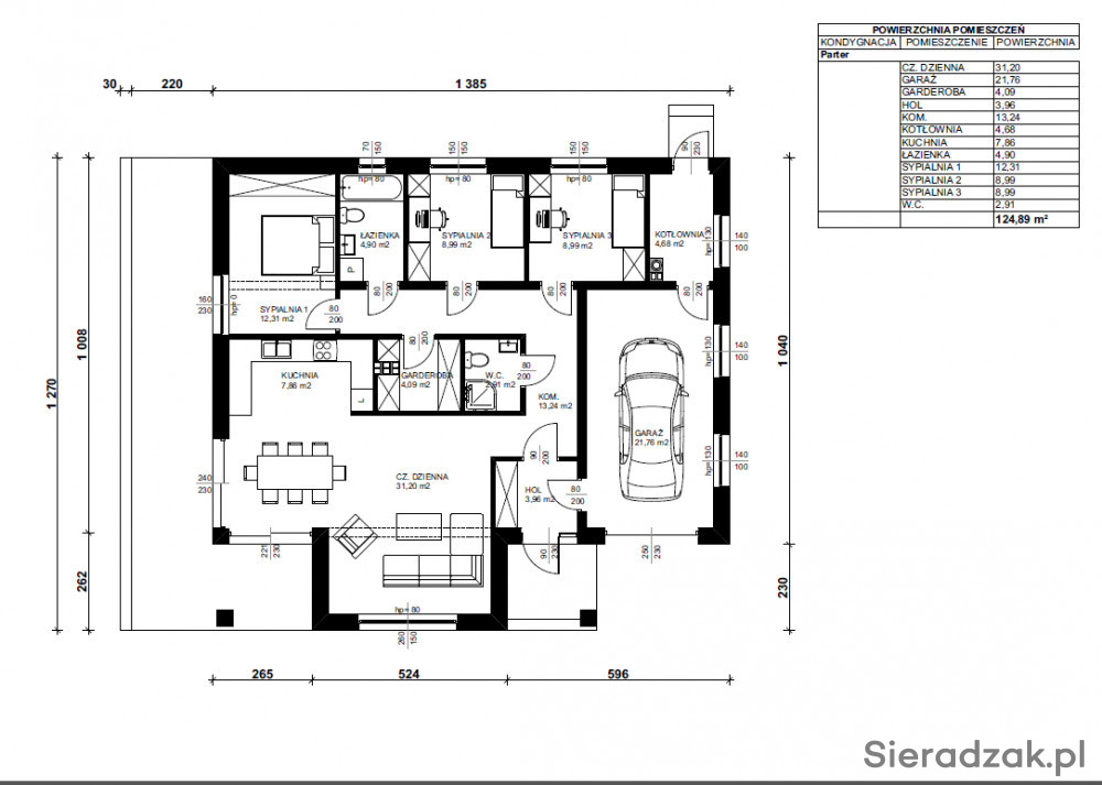 Całkowita powierzchnia użytkowa podstawowa: 124,44 m2