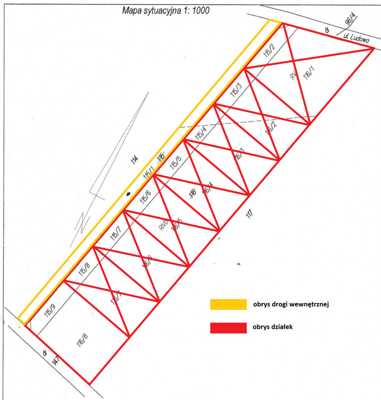 Działka sprzedawana z udziałem w drodze wewnętrznej.