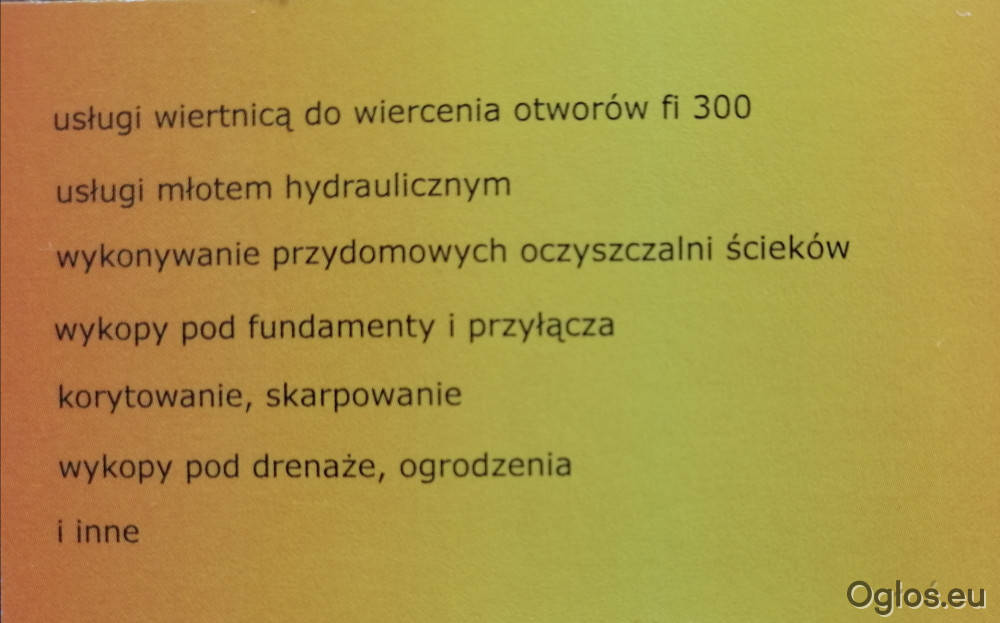 * usługi młotem hydraulicznym (kucie posadzek betonowych, fundamentów, ścian itp.)