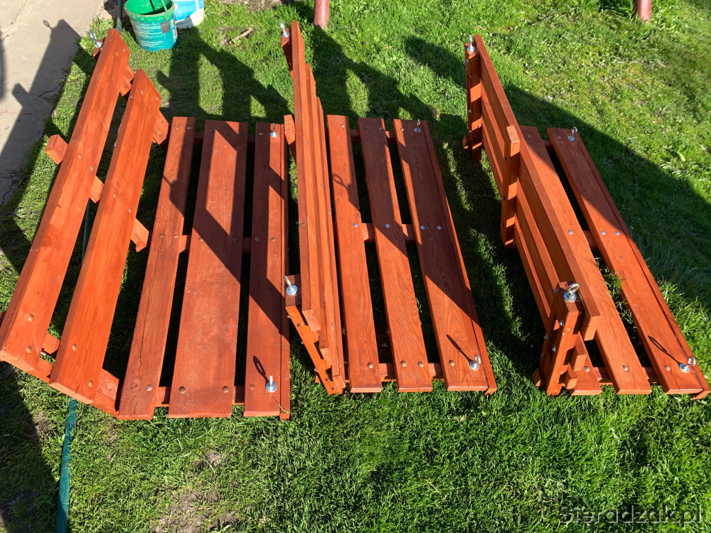Mam na sprzedaż ławki do huśtawek ogrodowych z drewna akacjowego, oheblowane, pomalowane, skręcane śrubami. Posiadam cztery sztuki.