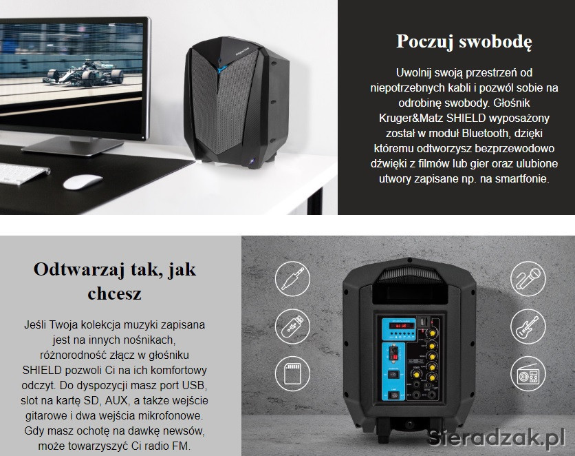 - Nagłośnienie (Kolumny Pasywne/Aktywne, Kolumny przenośne, Głośniki Bluetooth, Wzmacniacze, Miksery Audio/DJ, Mikrofony Przewodowe / Bezprzewodowe itp.)