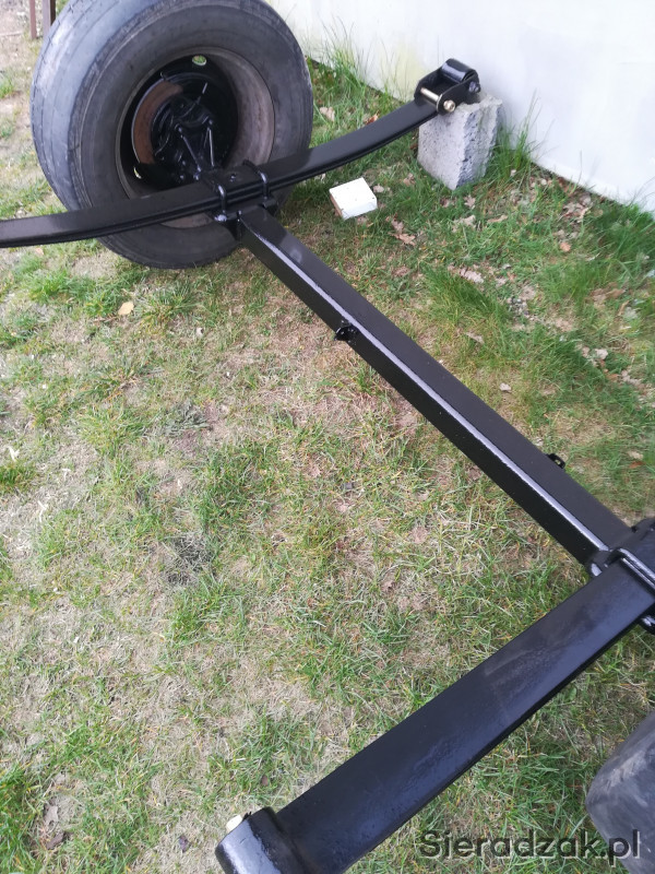 Oś kompletna z 2006 max tarcze , resory wzmacniane 8,2 cm, koła opony raczej do wymiany Os została wypiaskowana i pomalowana również podkladem