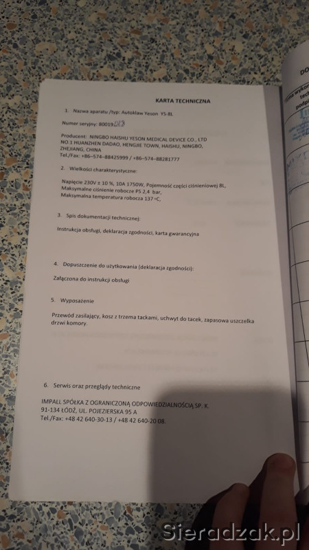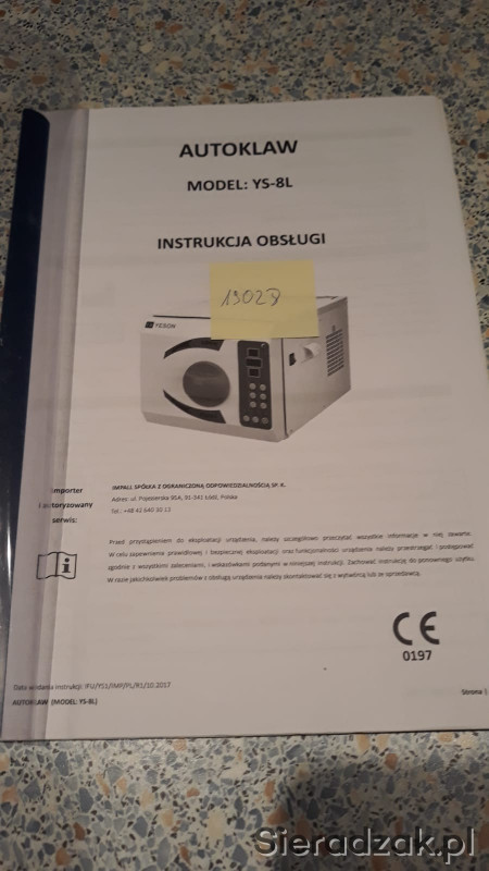 Autoklaw użytkowany przez 10 miesięcy do września 2019 roku.