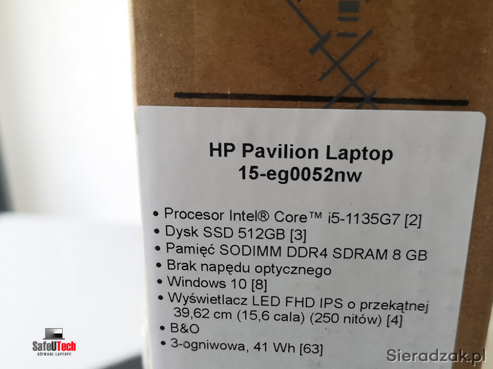 W ZESTAWIE NOWY, FABRYCZNIE ZAPAKOWANY HP PAVILION 15-EG0052NW Z POLSKIEJ DYSTRYBUCJI.