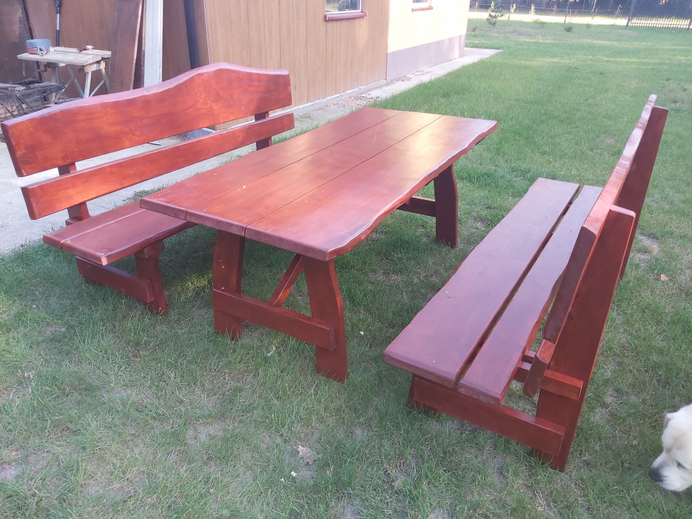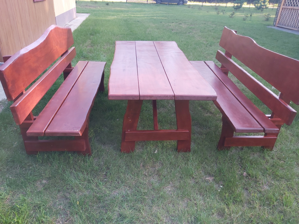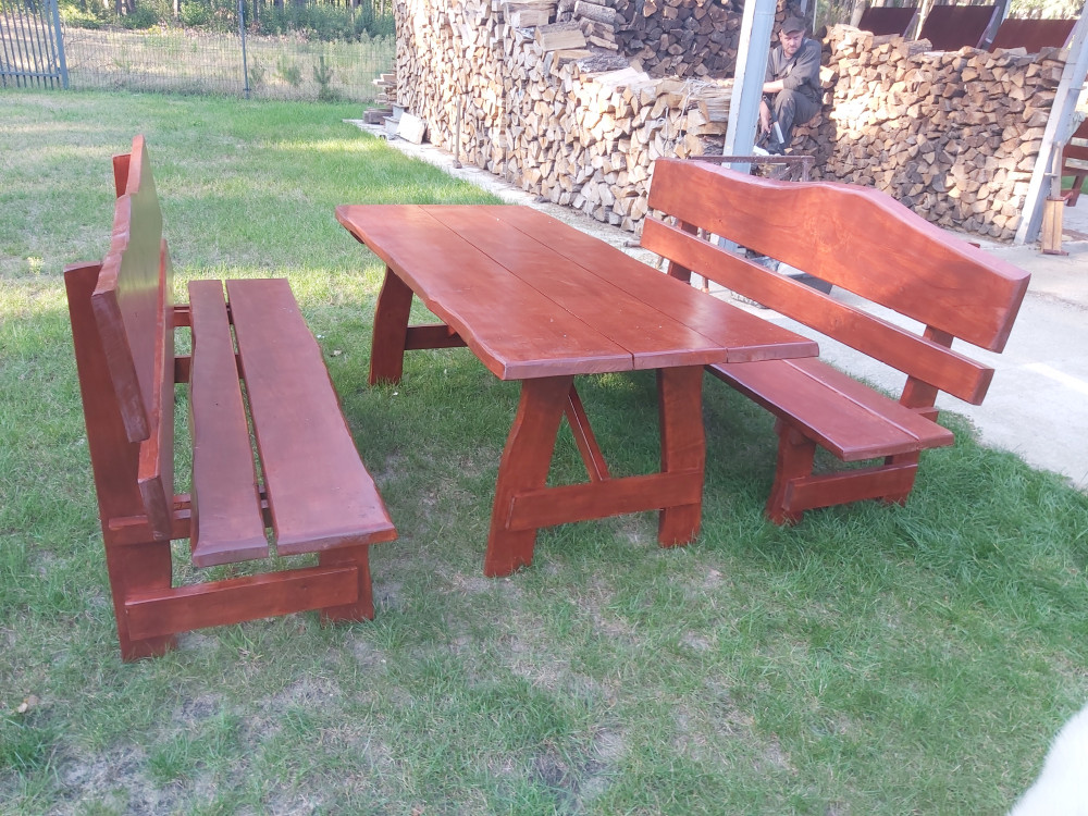 ZESTAW OGRODOWY DREWNIANY- STÓŁ+ 2 ŁAWKI