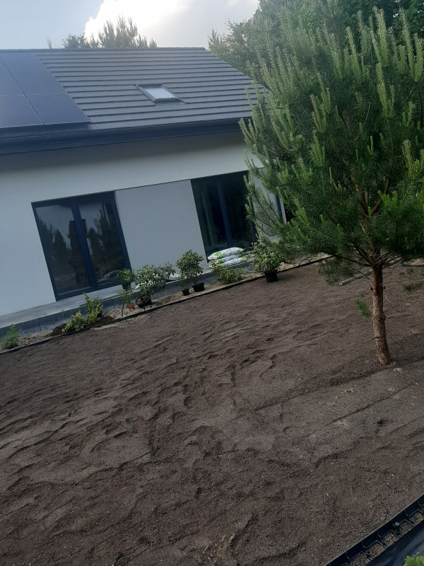 - Niwelacja kształtowanie terenu, formowanie skarp, - Ściółkowanie rabat korą sosnową, zrębkami, żwirkami ozdobnymi