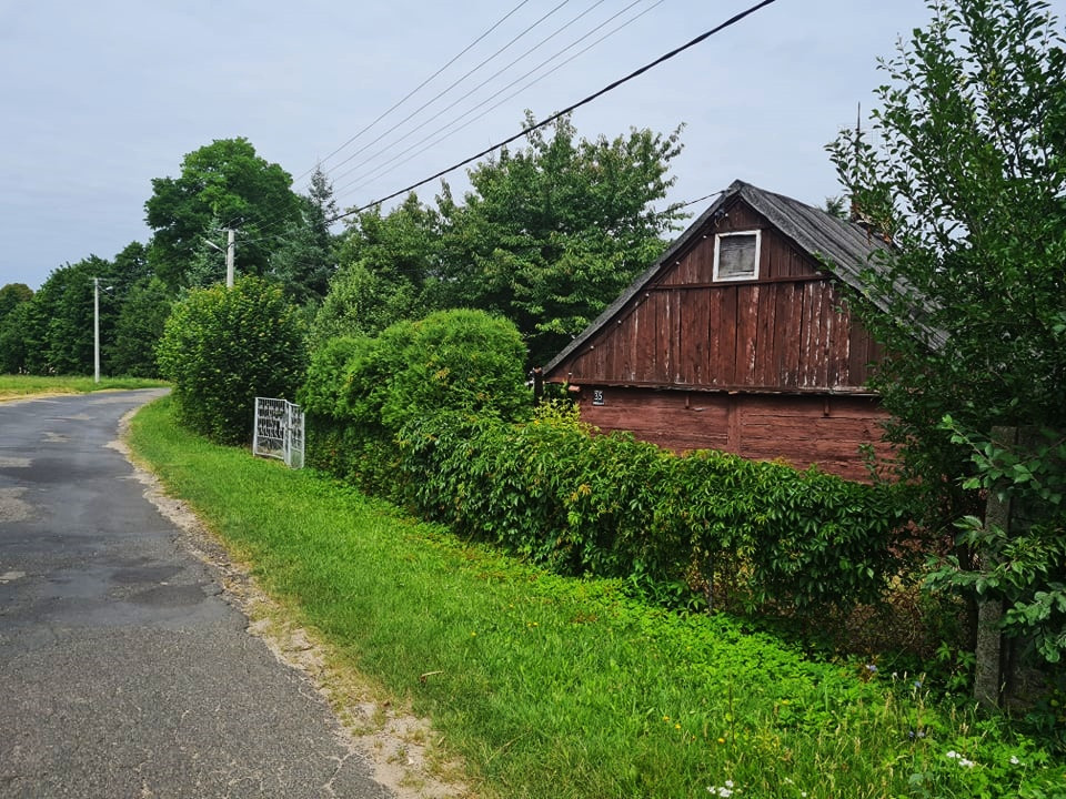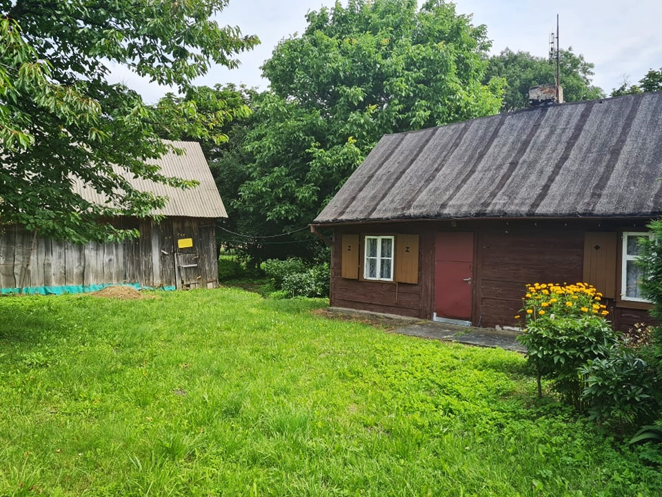 Na działce znajduję się dom z lat 50 tych, wybudowany metodą mieszaną z bali oraz bloków pokryty papą.