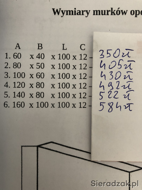 Cena za sztuke rozmiaru 60x40x100x12
