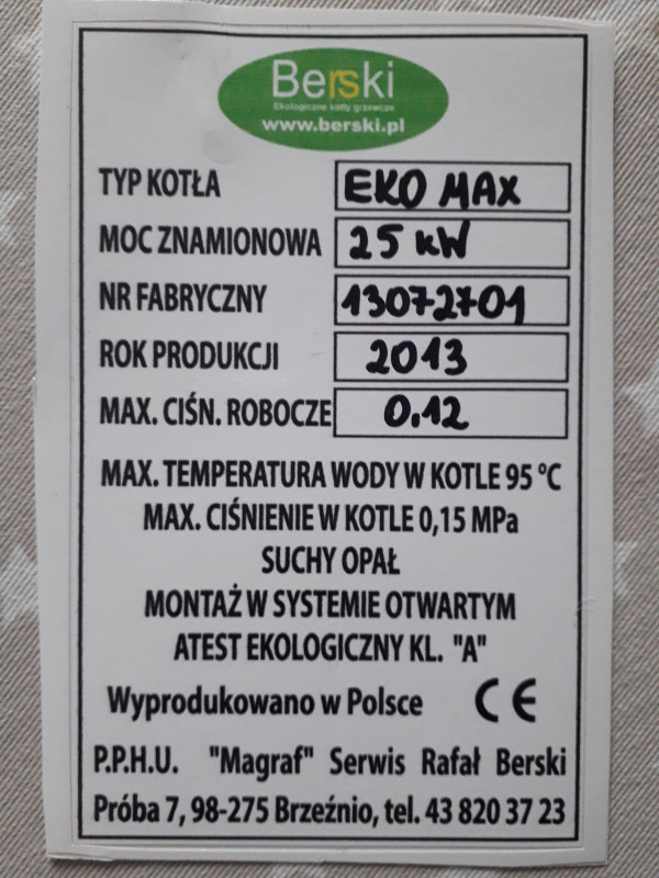 Sprzedam piec C. O Berski na EKOGROSZEK, wyposażony również w ruszta. Stan bardzo dobry. Sprzedaż z powodu zmiany systemu ogrzewania.