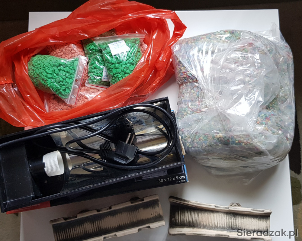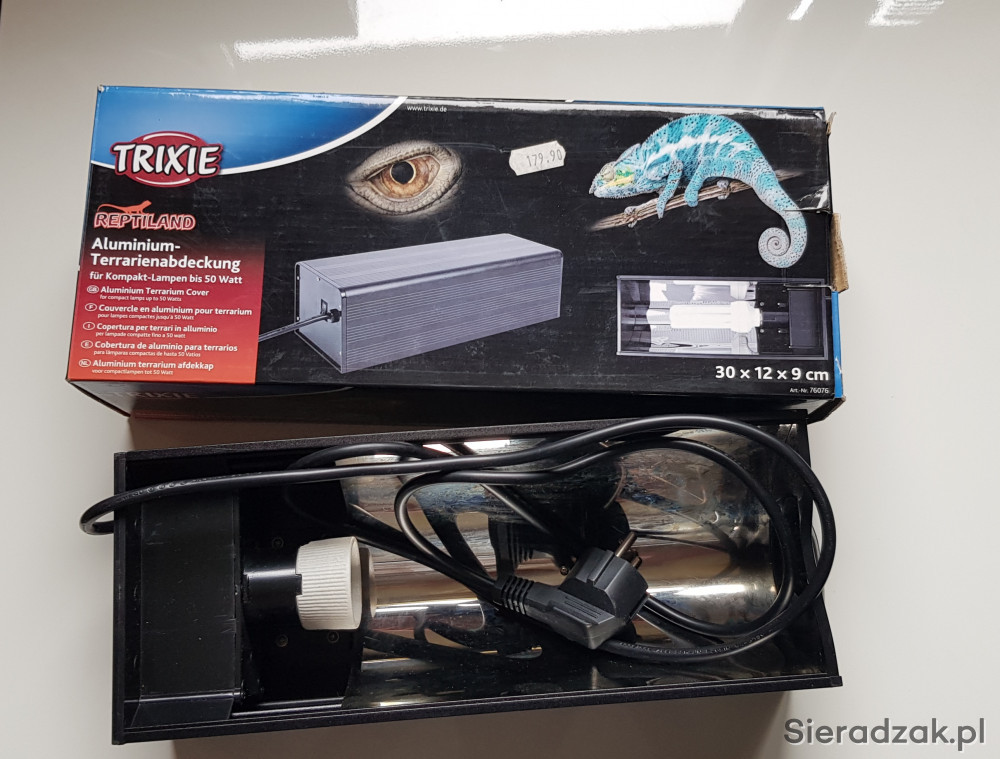 Sprzedam oprawe/osłone lampy grzewczej do terrarium w stanie idealnym firmy TRIXIE , wymiary jak na opakowaniu ze zdjecia , dodatkowo dorzucam kilka paczek kamieni kolorowych i mostek dekoracyjny . Tel 500 366 569.