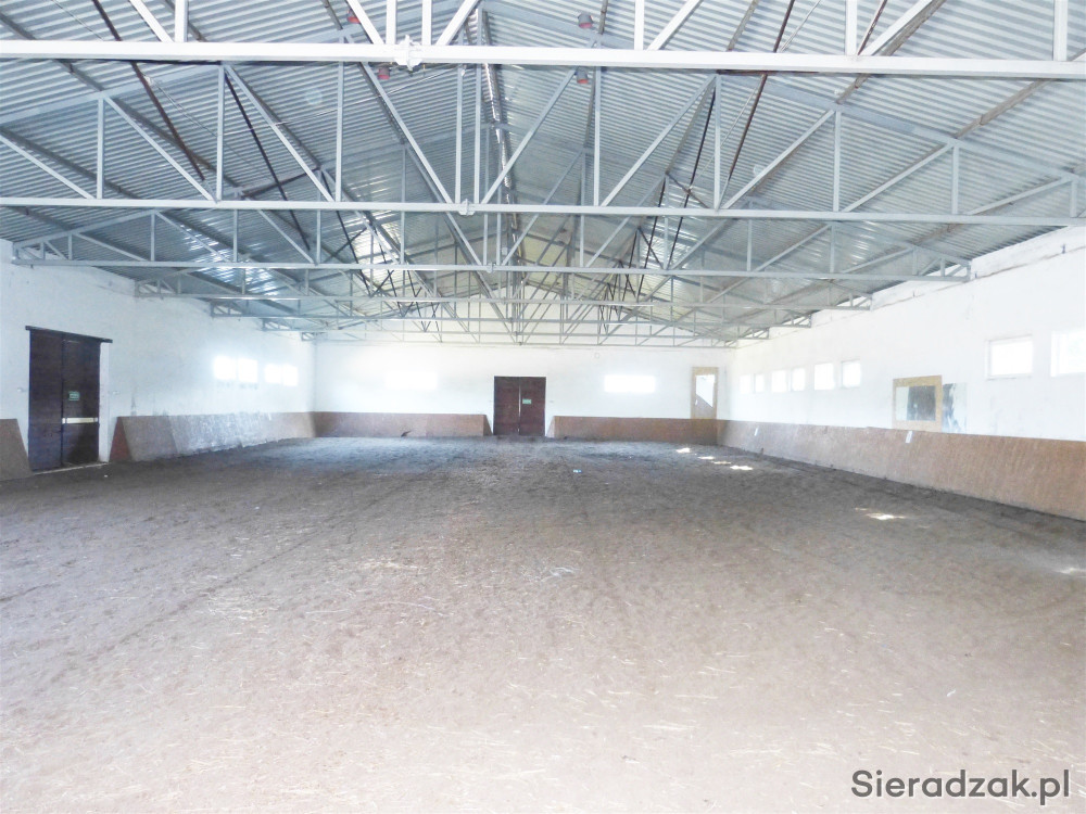 BUDYNEK UJEŻDŻALNI - o powierzchni użytkowej 755,56 mkw, wybudowany w 2014r. z bloczków betonowych, dach pokryty blachą trapezową, więźba dachowa ze stalowej kratownicy, okna PCV, w budynku rozprowadzona instalacja elektryczna i wodociągowa, tynki wewnętrzne cementowo- wapienne. Hala posiada specjalne podłoże gruntowe: trociny wymieszane z piaskiem płukanym i glinką.