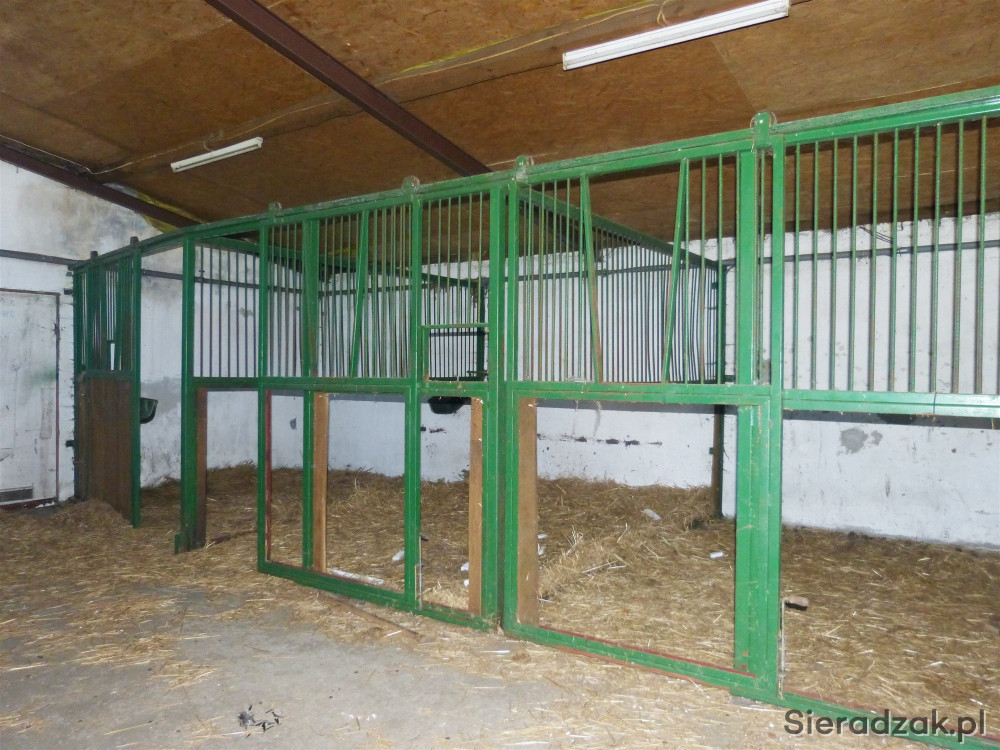 W skład budynku wchodzą pomieszczenia garażowe z kanałem oraz 6 boksów dla koni.