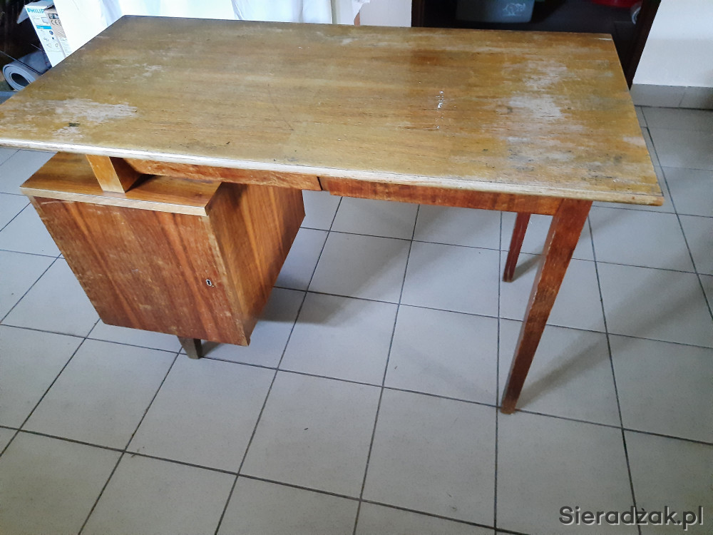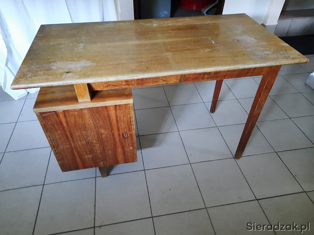 Oryginalne biurko z lat 60-tych wykonane wg projektu Mieczysława Puchały. Do renowacji. Suche, bez pleśni i zniekształceń, w pełni sprawne. Plamy po tuszu w szufladach i uszkodzenia forniru na blacie. Proszę o kontakt przez SMS.